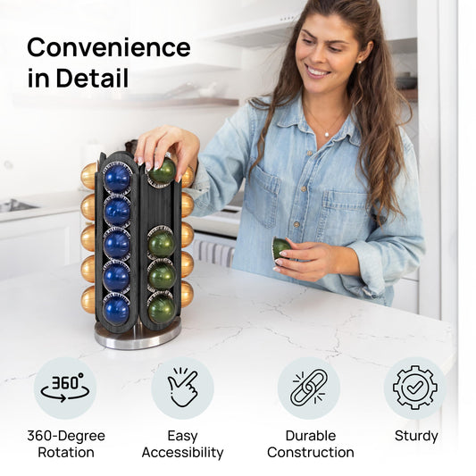 Ibyx Nespresso Pod Holder – Rotating Coffee Stand for Original & Vertuo | Black & Natural Wood Options