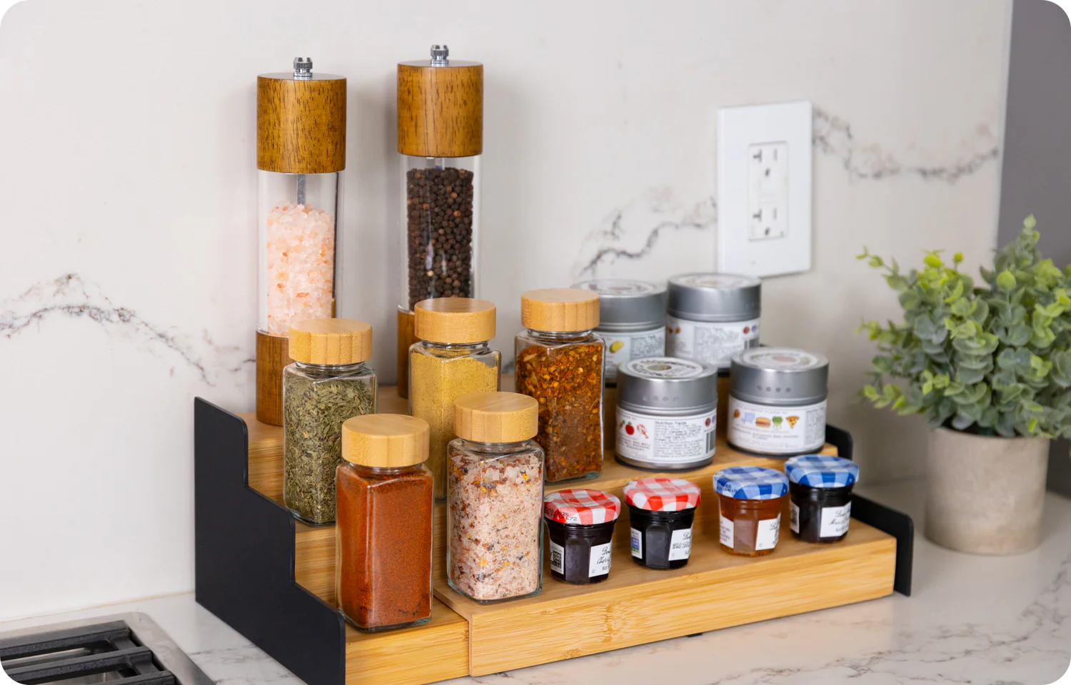 Enjoy a clutter-free, stylish kitchen with premium Canadian-crafted bamboo organizers that make every day easier and stress-free.